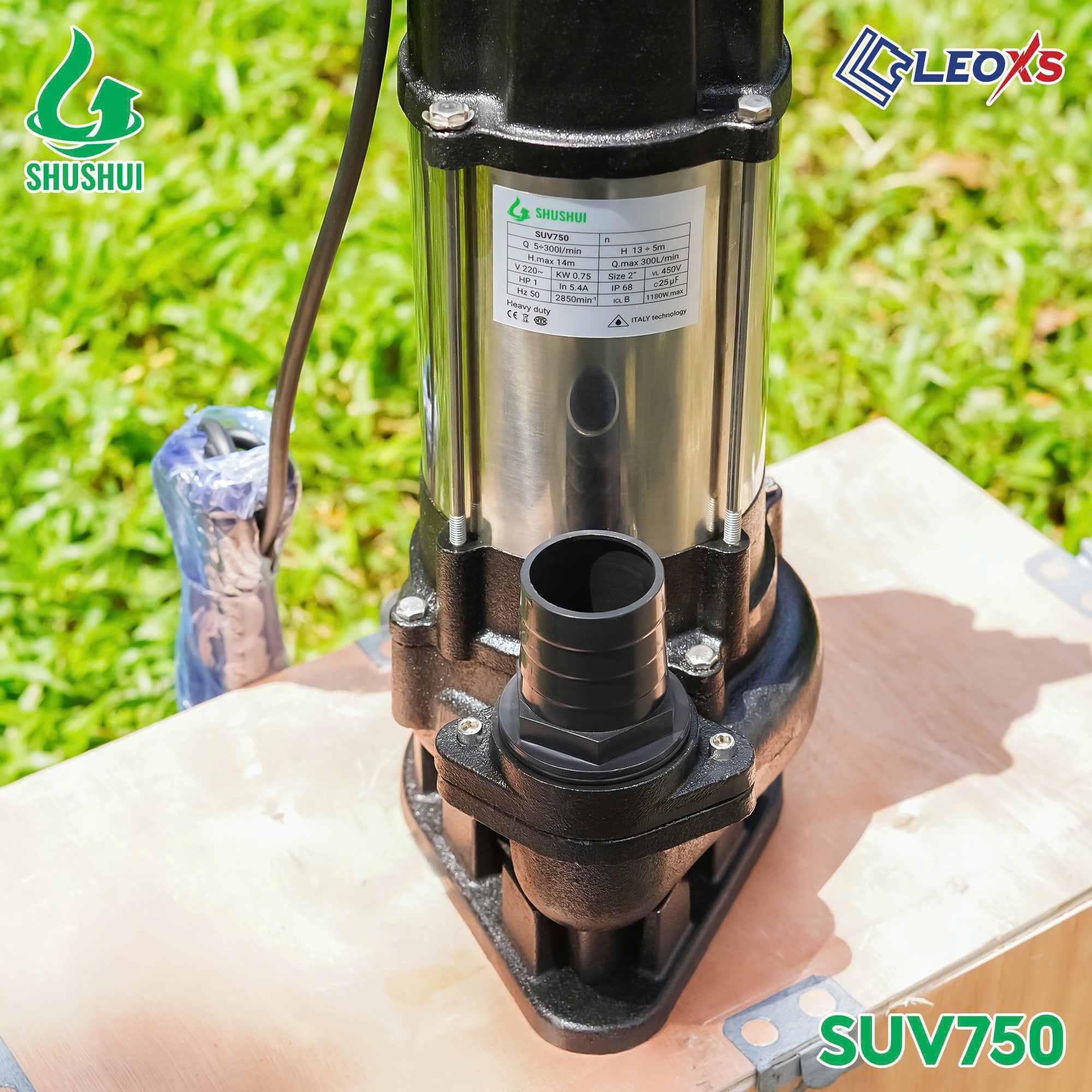 MÁY BƠM CHÌM INOX NƯỚC THẢI SHUSHUI CÔNG SUẤT 750W SUV750 - BƠM CHÌM NƯỚC THẢI 1 HP