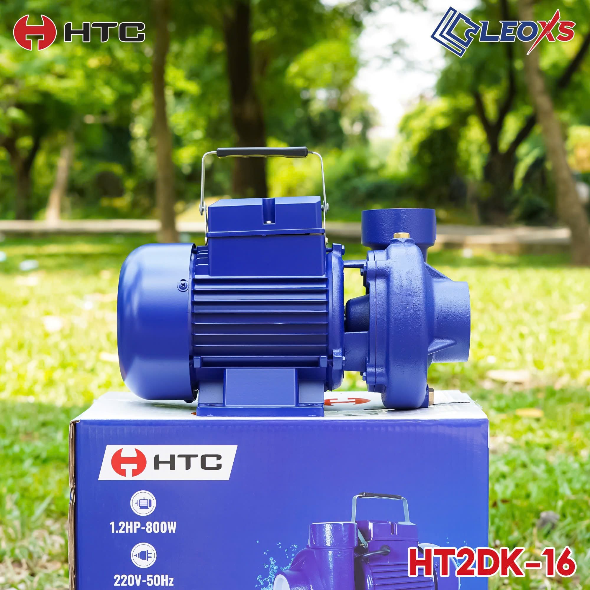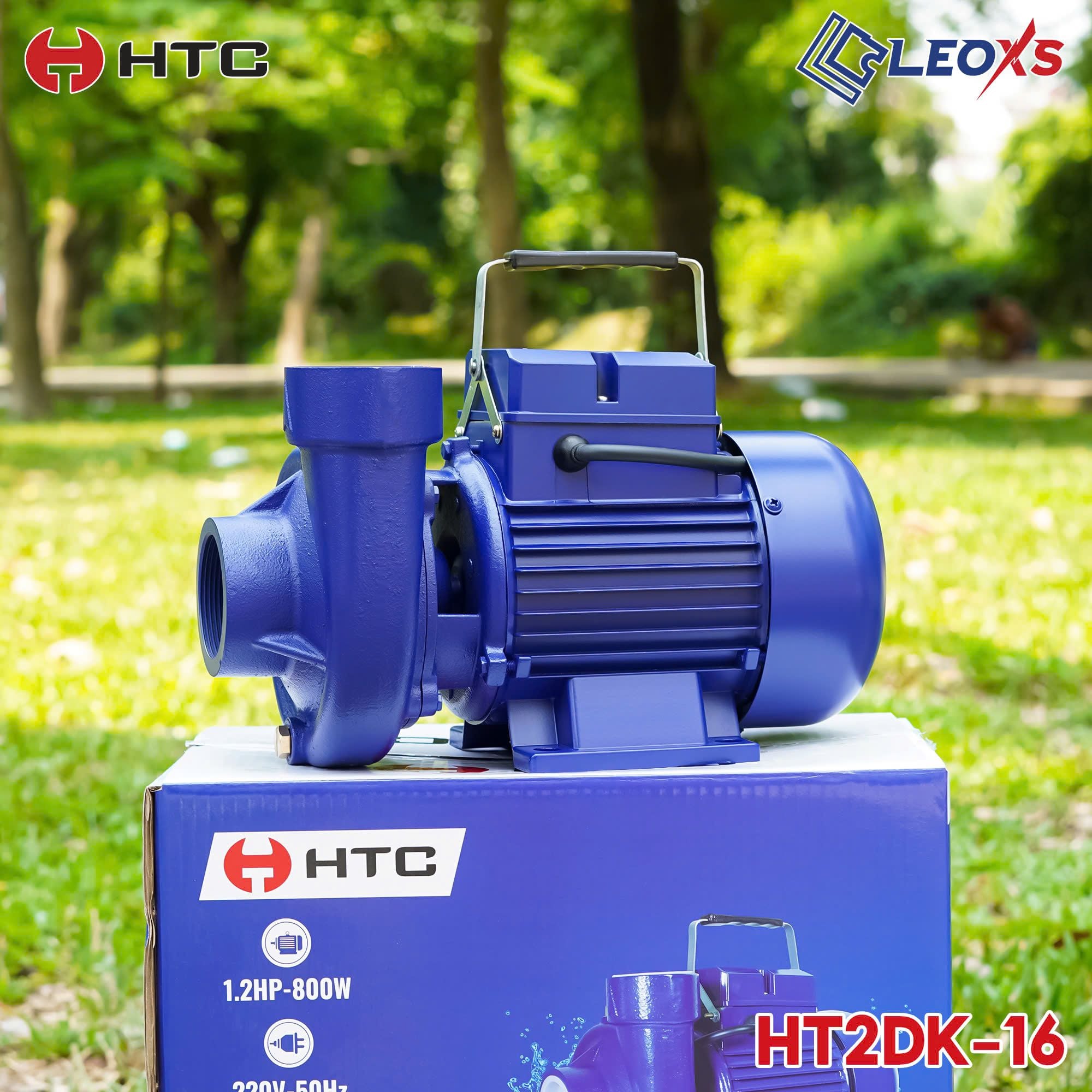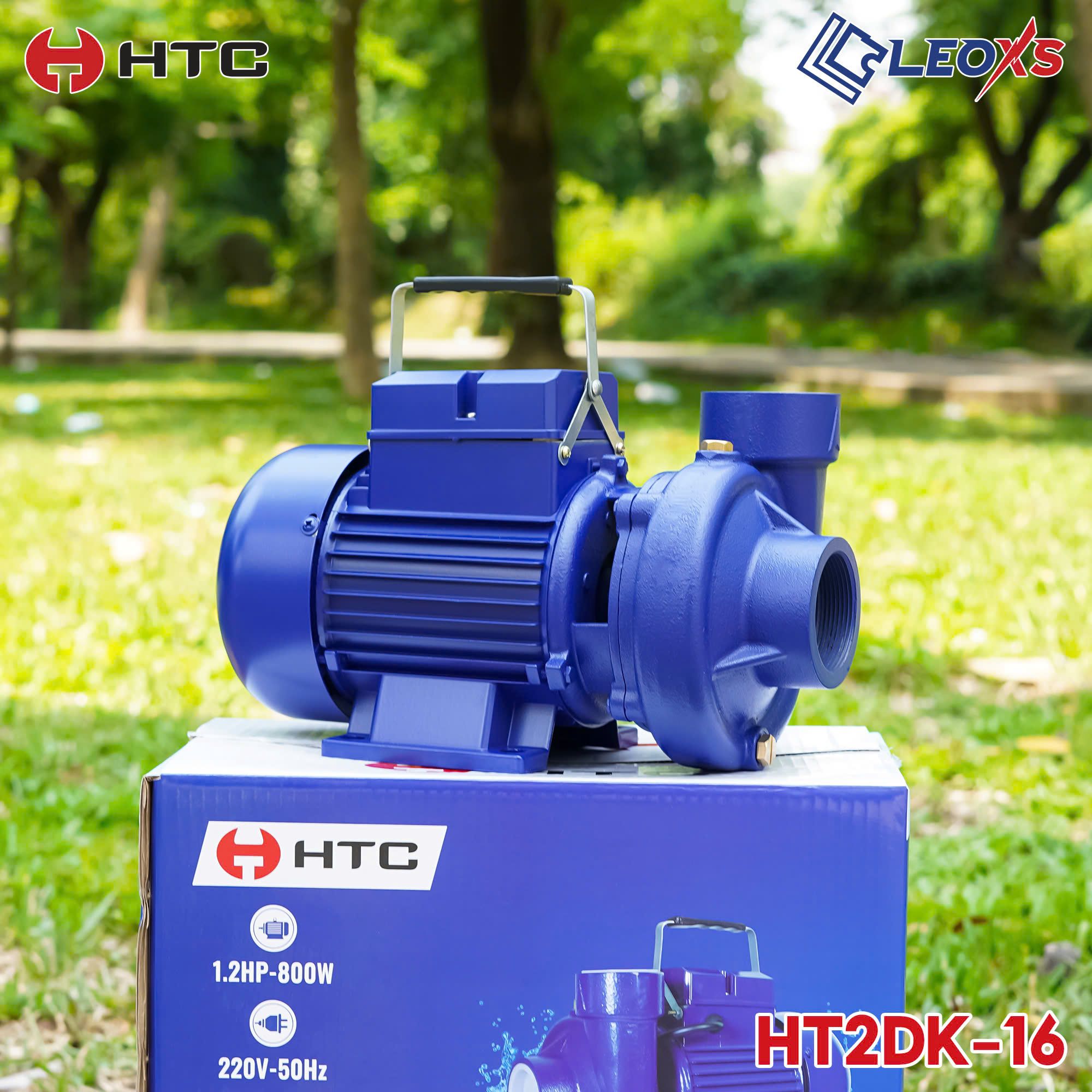 🔷 THÔNG SỐ VÀ CHI TIẾT SẢN PHẨM: Máy bơm nước HT2DK - 16 - Loại: Máy bơm nước dân dụng - Thương hiệu: HTC - Công suất: 800W (1,5HP) - Điện thế: 220V~50Hz - Lưu lượng (L/min) dòng chảy: 300 lít mỗi phút - Đẩy cao/Cột áp (m): 16 - Ống hút/xả (Φ): 60/60 - Hút sâu (m): 9 - Trọng lượng máy (kg): 12,5 - Cánh bơm: Đồng, cốt Inox 304
