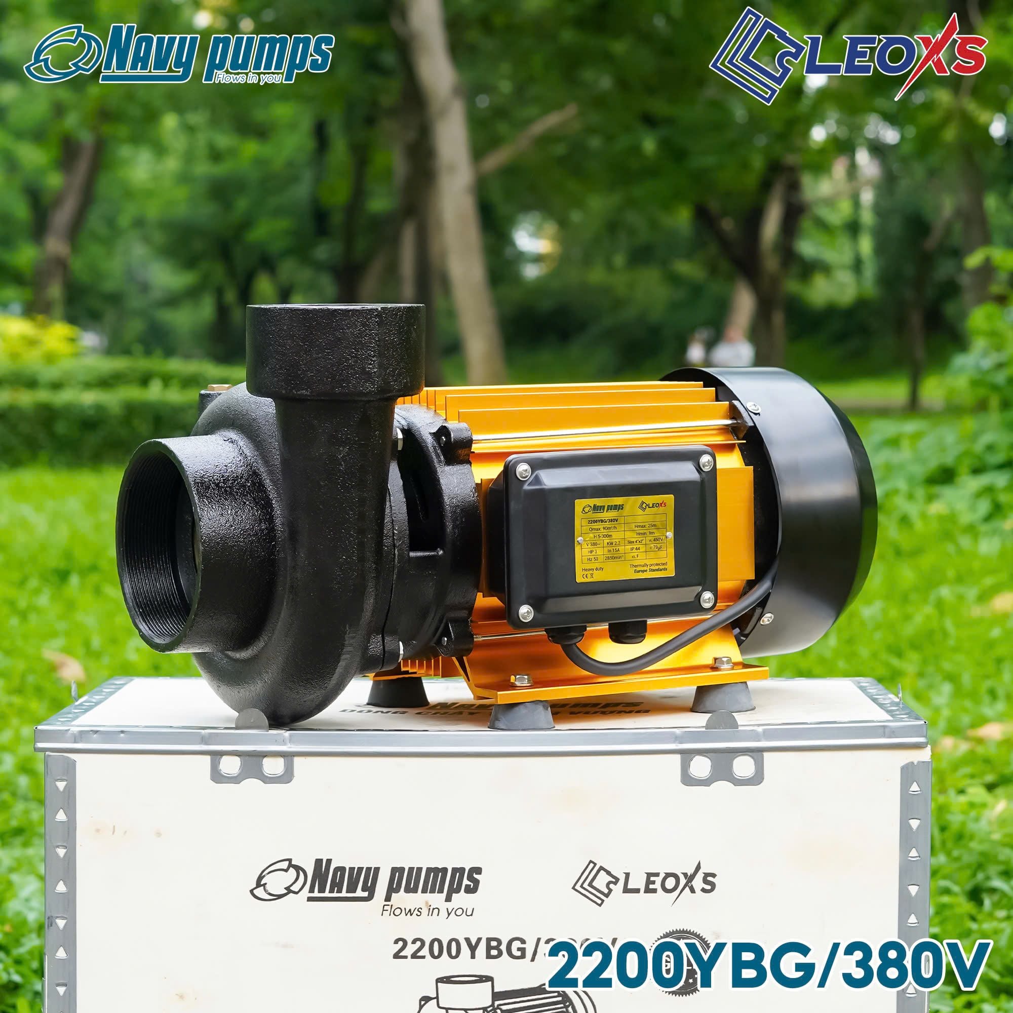 MÁY BƠM NƯỚC NAVY CHUYÊN LƯU LƯỢNG THÂN SƠN MẠ VÀNG 2200YBG ĐIỆN 380V