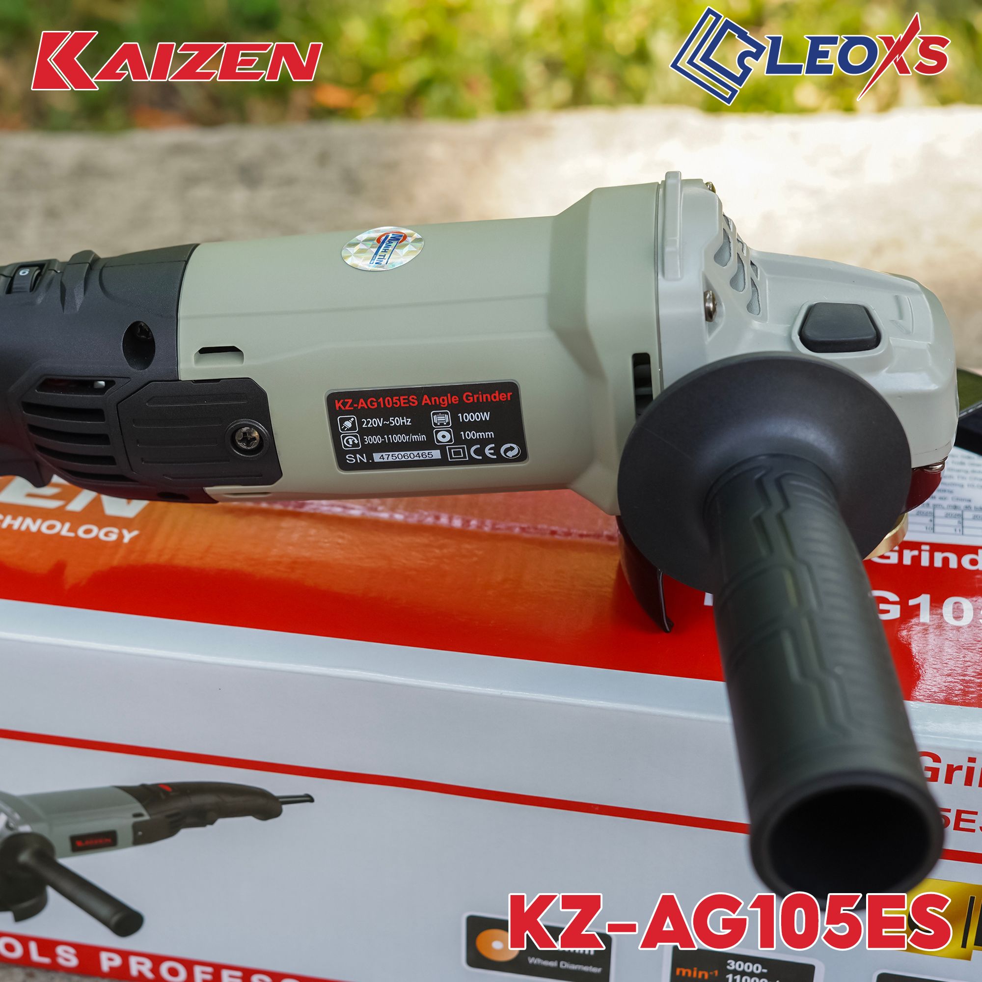 Máy mài tay dài Kaizen, cỡ đá 100mm, công tắc hãm, KZ-AG105ES
