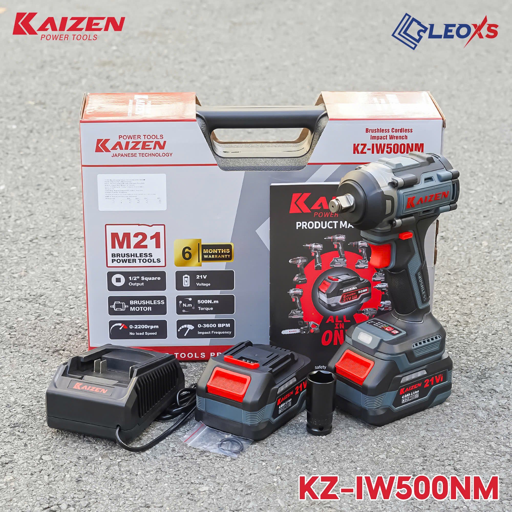 MÁY SIẾT BULONG KZ-IW500NM MOTOR KHÔNG CHỔI THAN CHÂN PIN M21 LỰC SIẾT 500NM CHO SỬA XE LẮP ĐẶT
